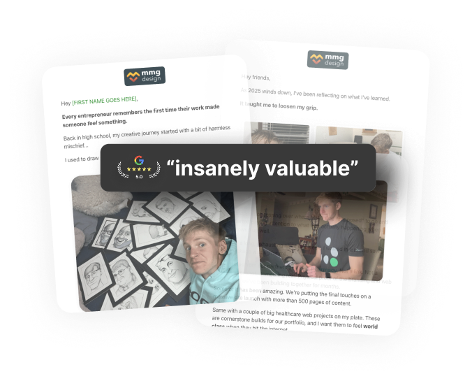 Hey there friend! My name is Andy and I am the founder of MMG Design and host of a podcast called Marketing by Design. I’m building a healthcare web studio, learning from people a few steps ahead of me, and teaching what’s working in real time.